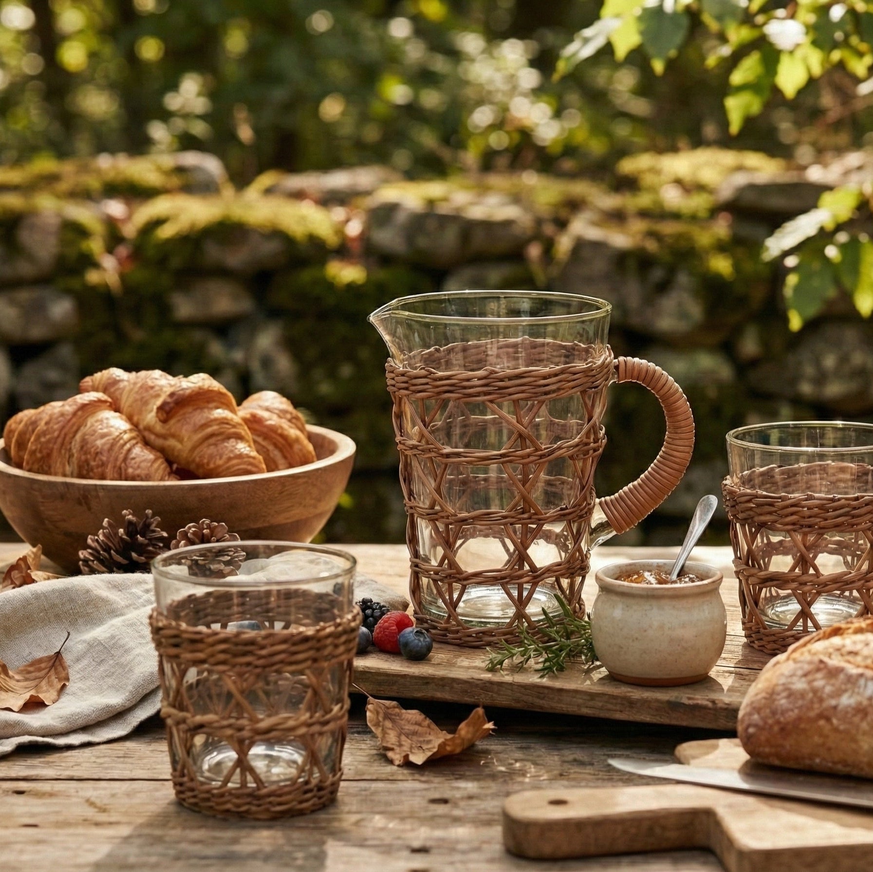 The Co Tumblers are named for the Vietnamese word for grass (Cỏ). They are study in texture and utility. The hand-woven seagrass provides a natural, slip-resistant grip that grounds the clarity of the glass in a rustic, earthy frame.